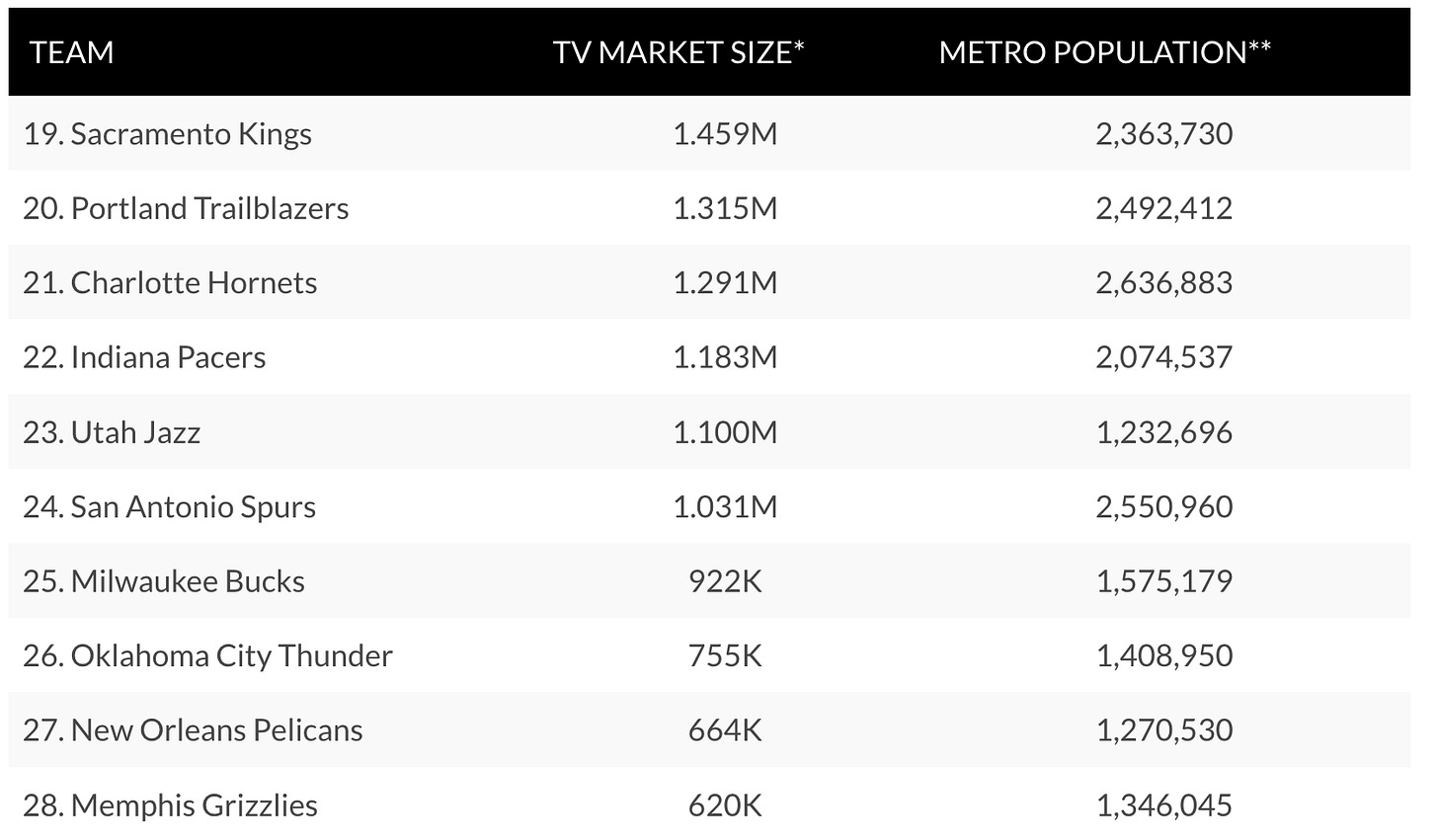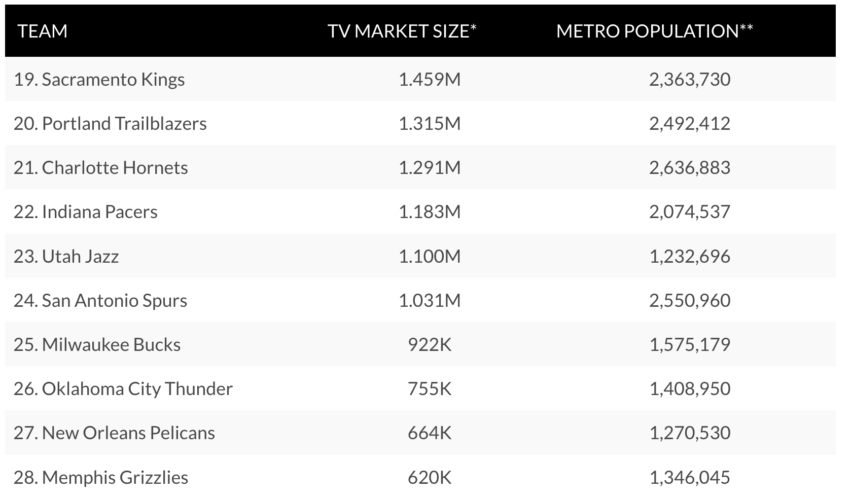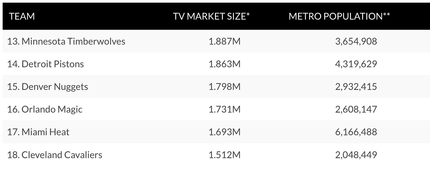 Except for the Celtics and Knicks, the NBA’s top teams right now are from smaller markets. In the East, Cleveland, Orlando, and Milwaukee are near the top. In the West, Oklahoma City, Memphis, Minnesota, and Denver are leading the charge.